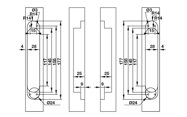 Kích thước bản lề âm điều chỉnh 3D cho cửa dày 40mm đen mờ hafele 927.03.023