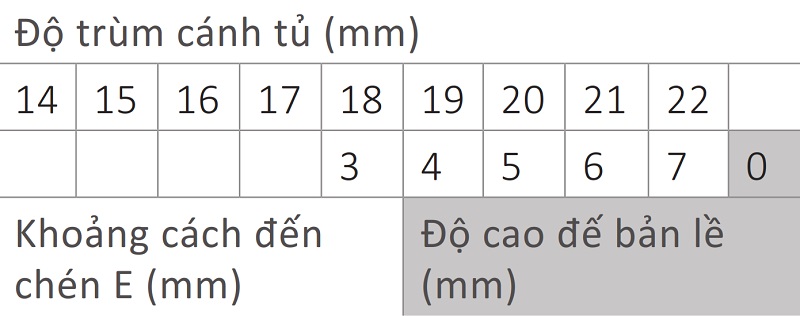 Bảng mã bản lề giảm chấn trùm ngoài 105 độ LEGATO Cucina