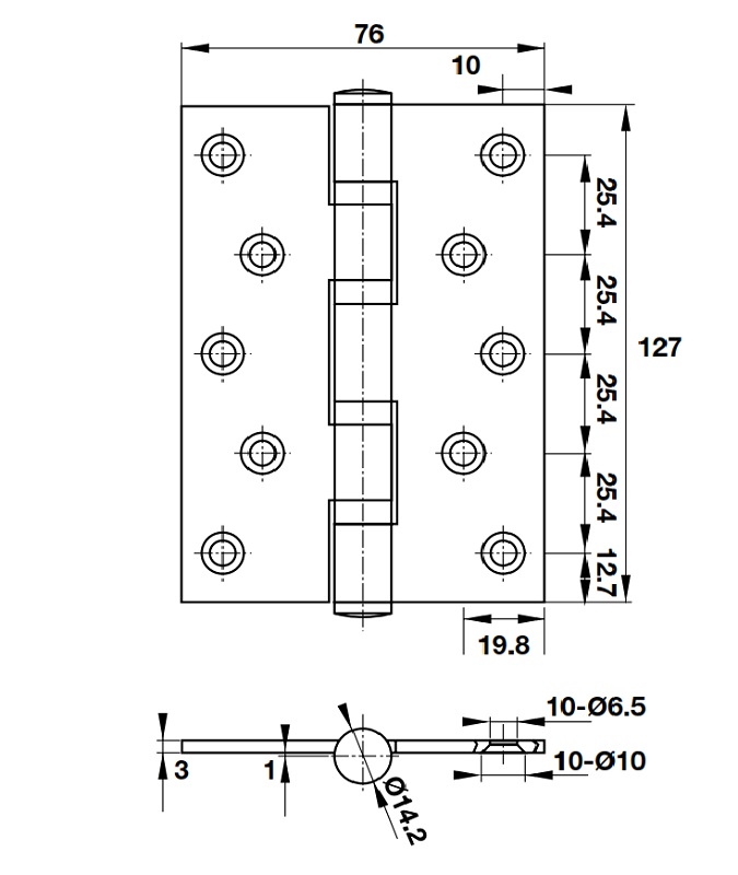 Kích thước bản lề lá 127x76x3mm 4BB inox mờ Hafele 489.05.027