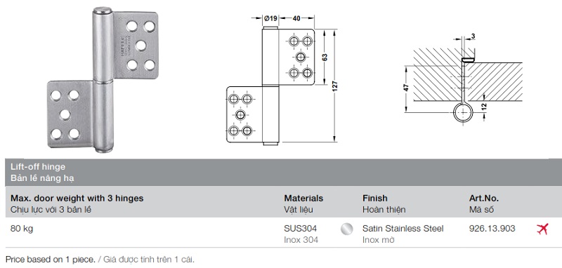 » Chịu lực: ≤80kg/ 3 bản lề