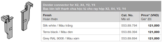Bas liên kết thanh chia hộc tủ đen cho ray hộp X2 X4 Y2 Y4 Blum Z40C0002 553.89.394