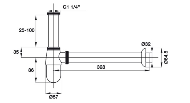 Kích thước bẫy nước P-trap Hafele 495.61.242