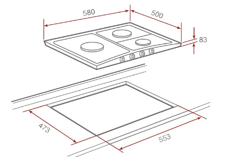 Kích thước bếp gas Teka 3 vùng nấu EX 60.1 3G