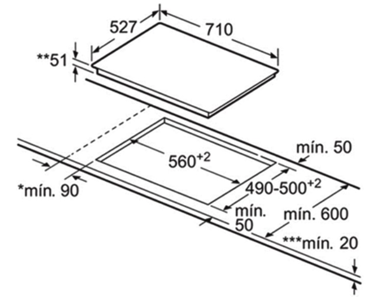 » Kích thước bếp (R x S x C)mm: (710 x 527 x 51)mm