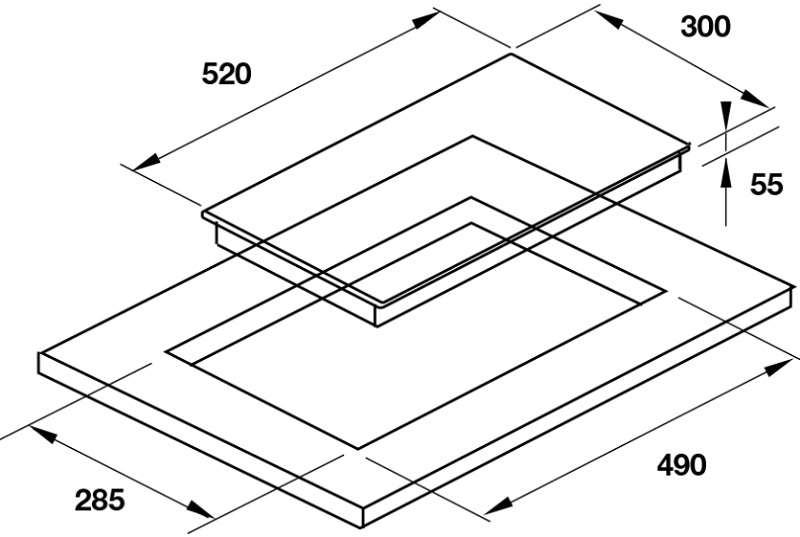 Kích thước lắp đặt bếp từ dạng domino 2 vùng nấu Fagor 3MI-2AS