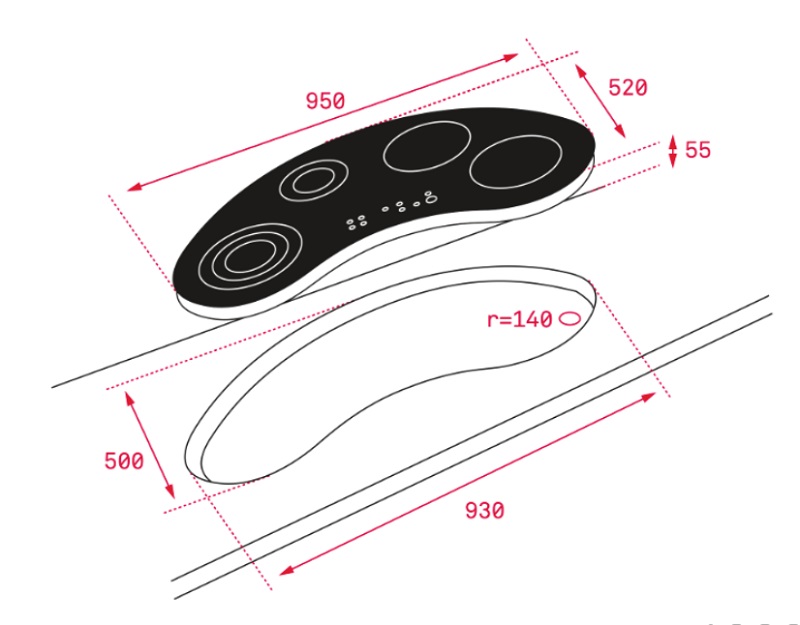 Kích thước lắp đặt bếp từ Teka 4 vùng nấu IRC 9430 KS
