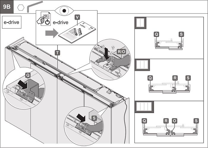 Lắp đặt bộ động cơ trượt bằng điện SLIDO CLASSIC 70 VF A Hafele 402.35.031