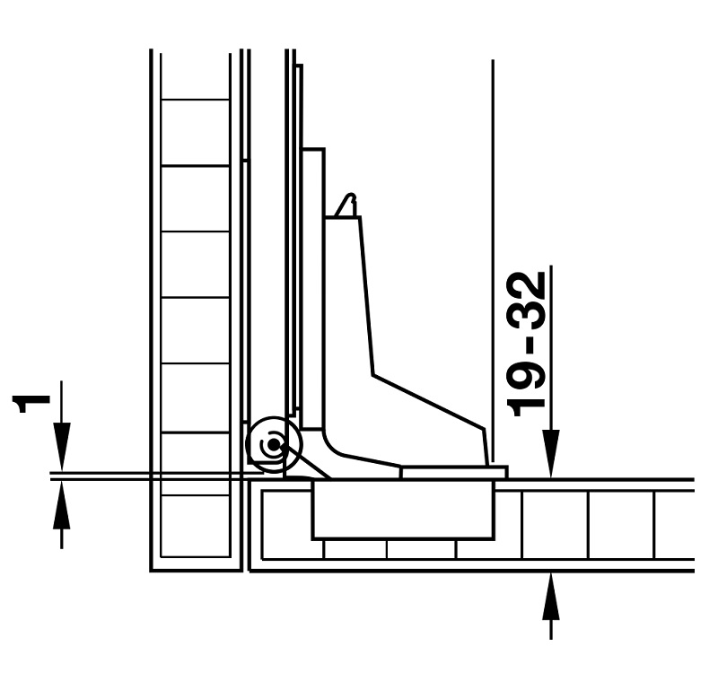 Lắp đặt bản lể lọt lòng bật góc 95 độ cho cửa dày 19-32mm khi cửa đóng