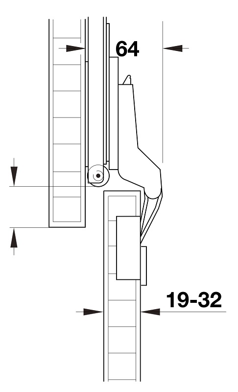 » Ứng dụng: Dùng cho bộ phụ kiện cửa trượt xoay SLIDO ECLIPSE, cho 1 cánh cửa dày 19-32mm, lắp đặt không có vách ngăn giũa