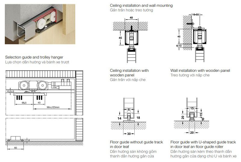 » Ứng dụng: Cửa trượt gỗ 1 hoặc 2 cánh