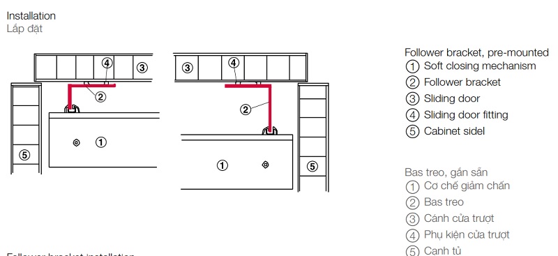 Lắp đặt phụ kiện giảm chấn SLIDO CLASSIC 40 IF AA cho cửa 2 hoặc 3 cánh Hafele 405.11.114