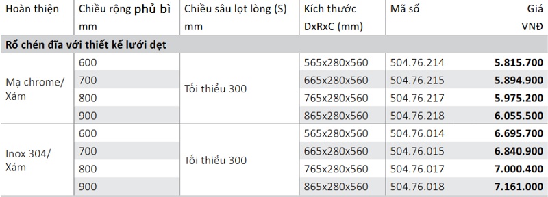 Bảng mã bộ rổ úp chén dĩa nâng hạ lưới dẹt LENTO Cucina