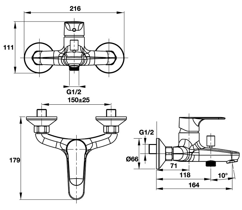 Kích thước bộ trộn bồn tắm ACTIVE lắp nổi Hafele 589.02.733
