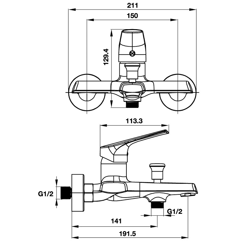 Kích thước bộ trộn bồn tắm VIGOR lắp nổi Hafele 495.61.142