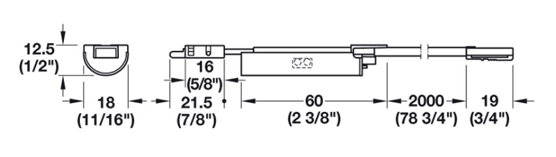 Kích thươc cảm biến cửa cho thanh dẫn đèn gắn hộc kéo Hafele Loox5 12V 60W 833.70.319