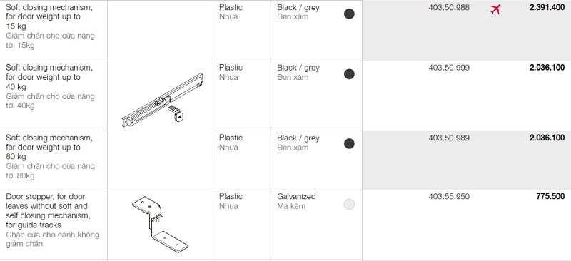 Chặn cửa SLIDO ALUFLEX 80 cho cánh không giảm chấn Hafele 403.55.950
