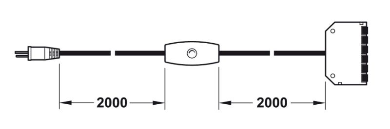 Kích thước dây dẫn điện Loox 12V với Công tắc chạm dimmer và bộ chia 6 cổng dài 4m Hafele 833.74.749