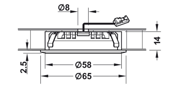 Kích thước đèn chiếu Hafele Loox LED 2039 lắp âm 12V 2.5W 3000K mạ niken mờ 833.72.091