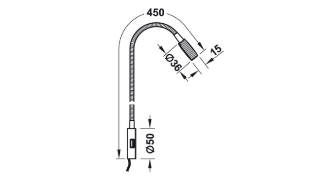 Kích thước đèn đọc sách Hafele Loox LED 2034 12V 4000K có cổng USB màu chrome bóng 833.74.096
