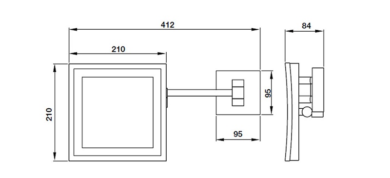 Kích thước gương phóng đại hình vuông có đèn led Hafele 495.81.006