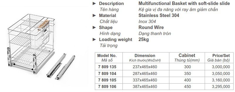 Bảng mã kệ gia vị đa năng với ray âm giảm chấn Imundex
