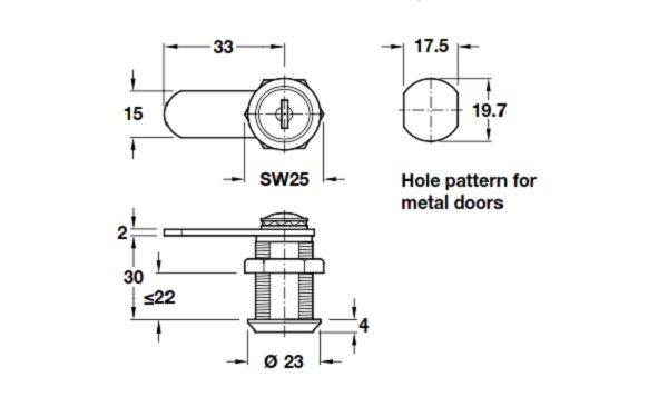 Khóa cốp ECONO cho cửa dày 22mm Hafele 235.19.211