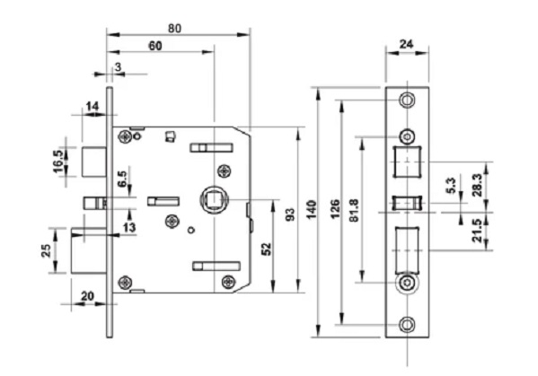 • 1 mặt trong khóa & 1 mặt ngoài khóa