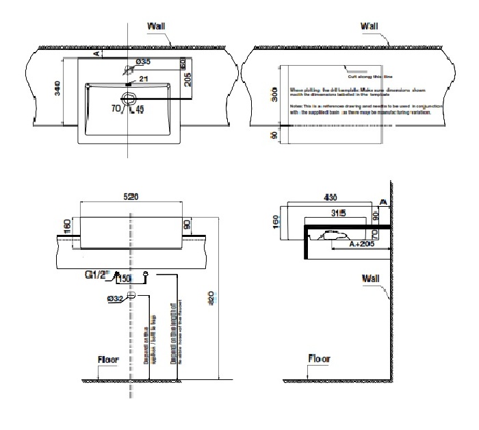 Kích thước Lavabo Hafele 588.79.040 Sapporo bán âm
