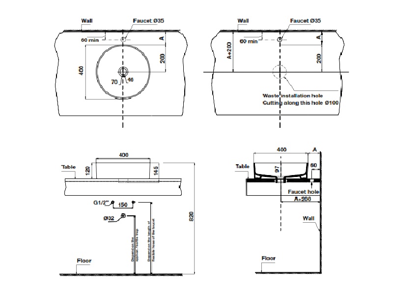 Kích thước Lavabo Hafele 588.79.070 Sapporo đặt bàn