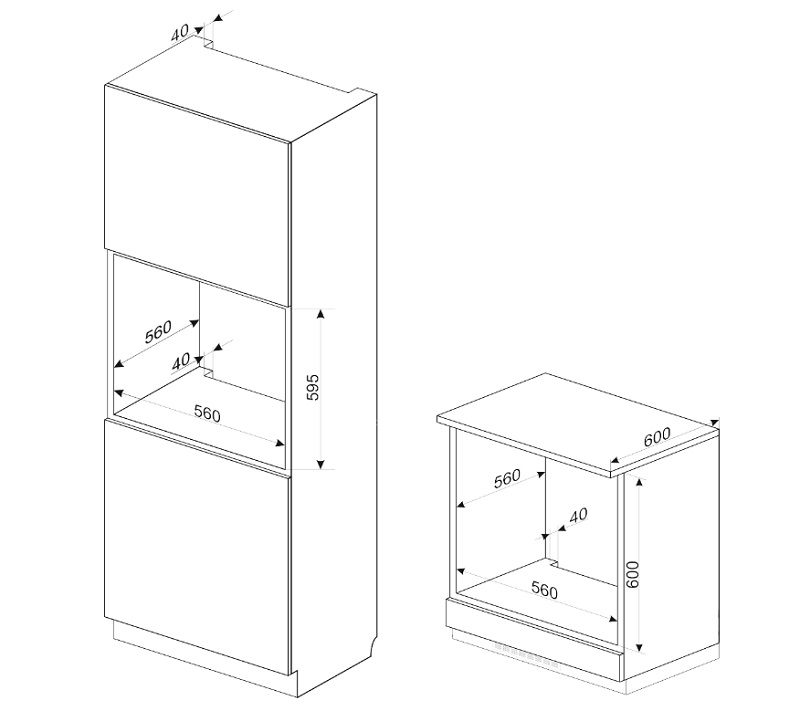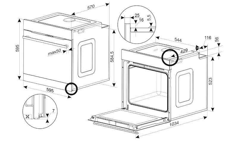 Kích thước lắp đặt lò nướng kết hợp hấp 77L Fagor 8H-895TFTN A