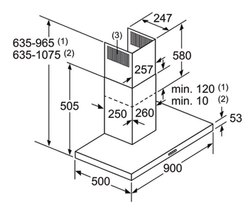 Kích thước máy hút mùi 90cm gắn tường inox Series 4 Bosch DWB97DM50B
