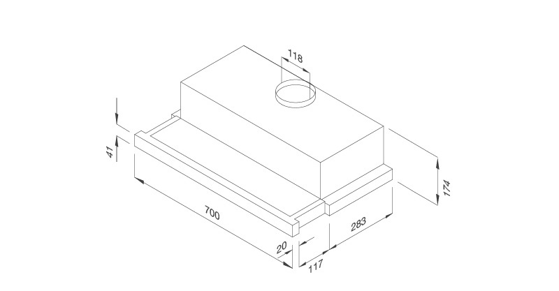 – Kích thước: R700 x S303 x C174 mm