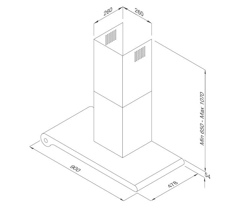 – Kích thước: R900 x S478 x C(650-1070) mm
