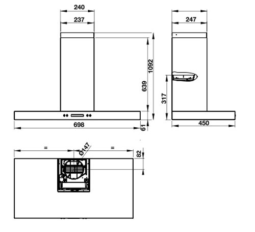 Kích thước máy hút mùi áp tường mặt inox Hafele HH-WI70C 539.81.158 – 70cm