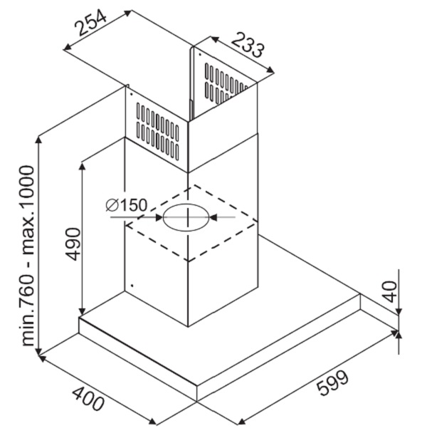 Kích thước máy hút mùi gắn tường mặt kính và inox Fagor 3CFS-6032X