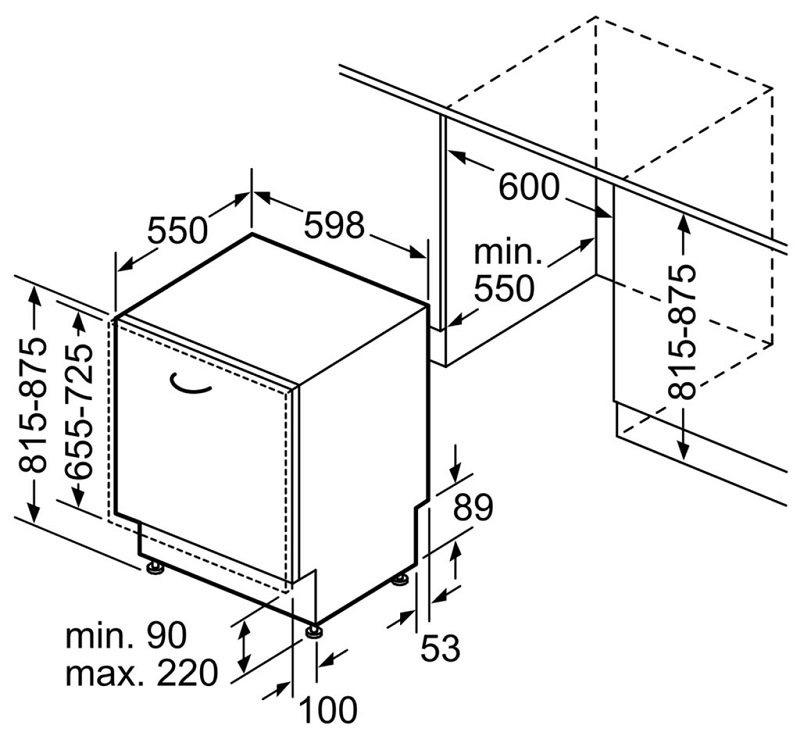 Kích thước lắp đặt máy rửa chén âm toàn phần Home connect Series 4 Bosch SMV4ECX14E