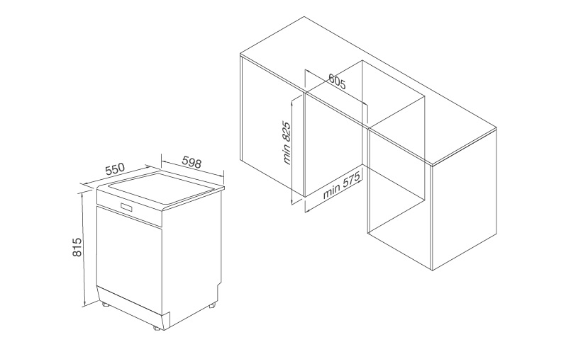 Kích thước máy rửa chén âm toàn phần Malloca WQP12-J7713FB