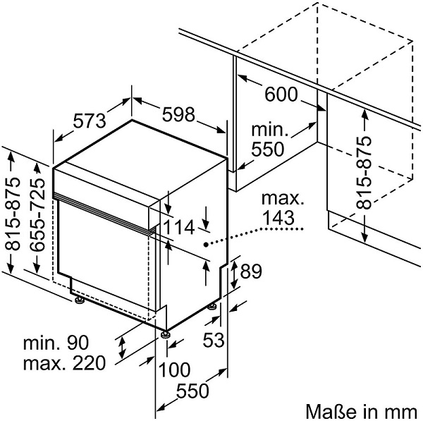 Kích thước lắp đặt máy rửa chén bán âm Home connect Serie 4 Bosch SMI4HCS48E