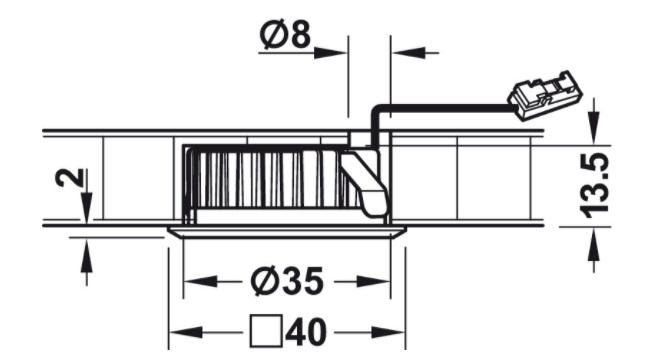 Kích thước nắp che vuông lắp âm cho đèn chiếu Hafele Loox5 LED 2040 màu đen 833.72.188