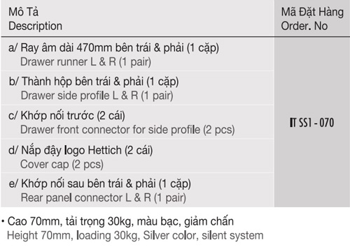 Ray hộp Innotech H70 bạc Hettich IT SS1-070