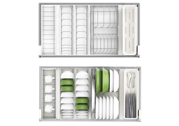 » Thiết kế riêng cho thị trường châu Á: Phụ kiện thích hợp để lưu trữ các loại chén đĩa thường dùng bởi các gia đình châu Á.
