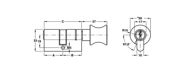Kích thước ruột khóa đầu chìa đầu vặn 61mm đen mờ PVD Hafele 916.63.321