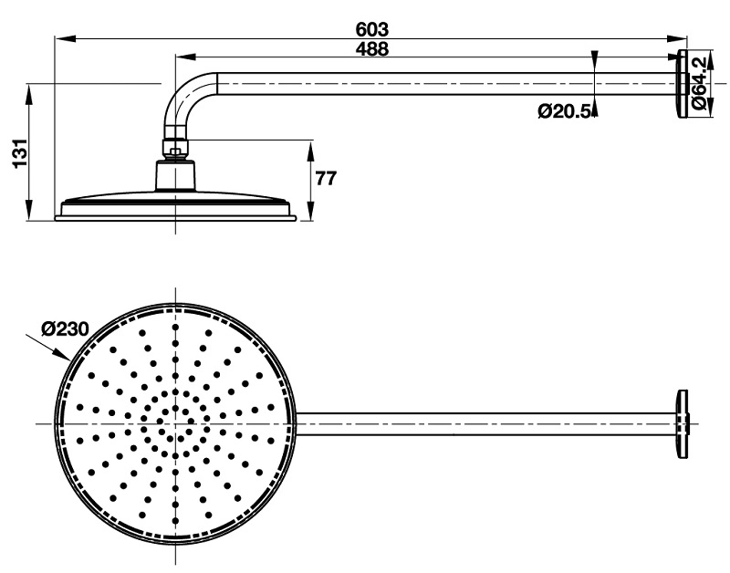 Kích thước sen đầu gắn tường Airense 230R Hafele 485.60.620