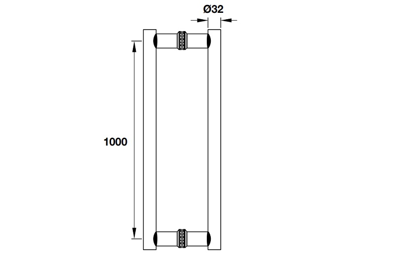 Kích thước tay nắm kéo đẩy chữ H CC-1000 x L1200mm inox mờ Hafele 499.68.036