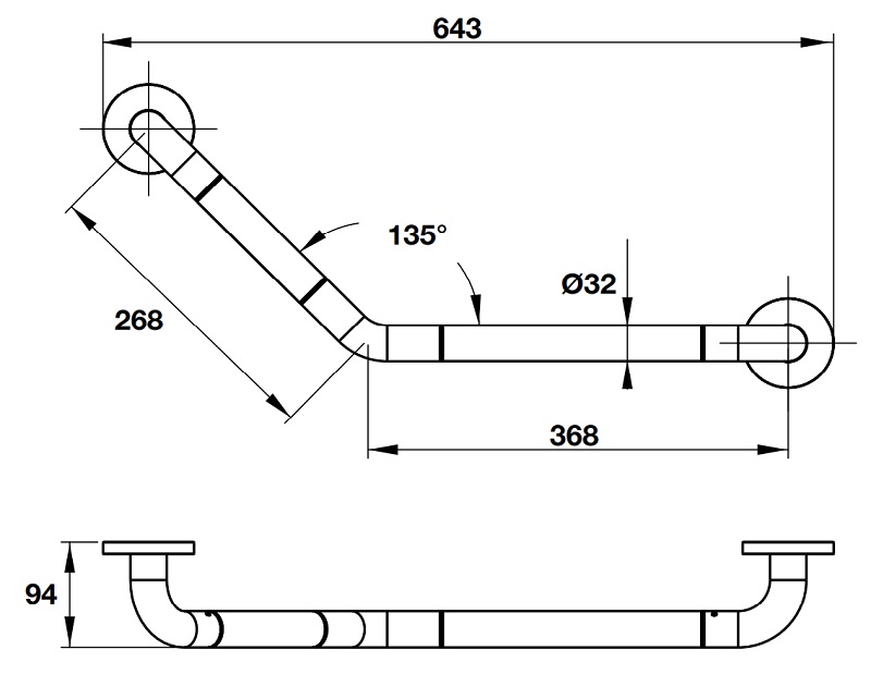 Kích thước tay vịn phòng tắm 110 độ Hafele 499.95.200