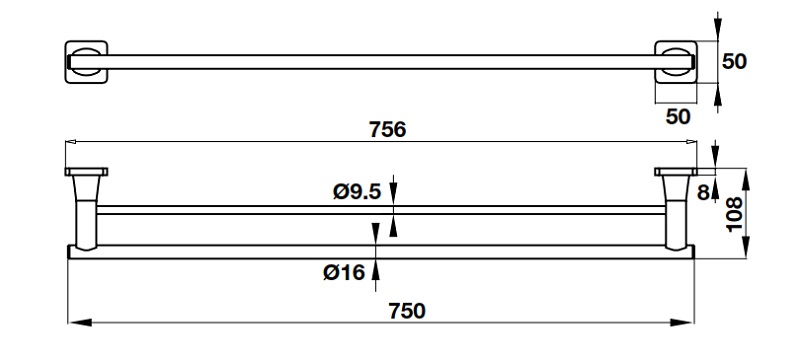 Kích thước thanh treo khăn đôi Fortune 750mm Hafele 580.41.412