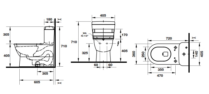• Nắp đậy bồn cầu đóng êm, bộ phụ kiện lắp đặt