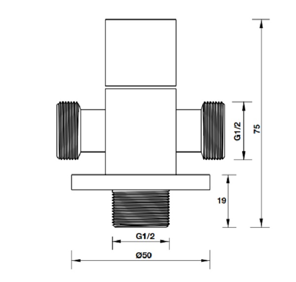 Kích thước van khóa nước dạng vuông 2 đường nước Hafele 495.61.254