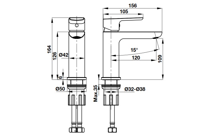 • Khoảng cách từ đầu vòi đến chậu / mặt bàn: 109mm